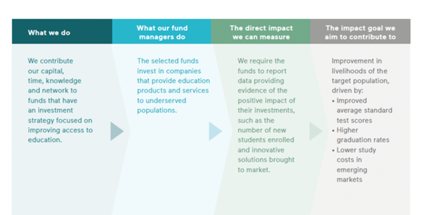 The Fund operationalises its sustainable investment objective through a Theory of Change (“ToC”) that structures how capital allocation leads to positive, measurable outcomes. For each of the four impact themes (Healthcare, Education, Financial Inclusion, Climate), Anthos applies a theme-specific ToC that identifies: (1) the inputs provided by the Fund (capital, expertise, engagement), (2) the activities of underlying fund managers, (3) the outputs measured through indicators, and (4) the longer-term outcomes aligned with relevant SDGs.